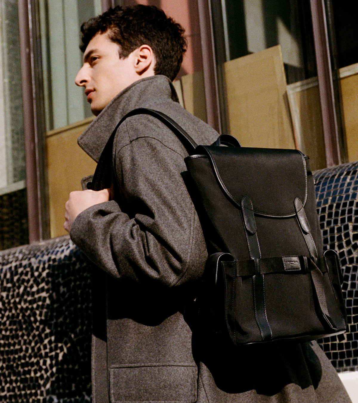 Toile nylon et refente de cuir de vachette, associant modernité et élégance avec une durabilité renforcée.