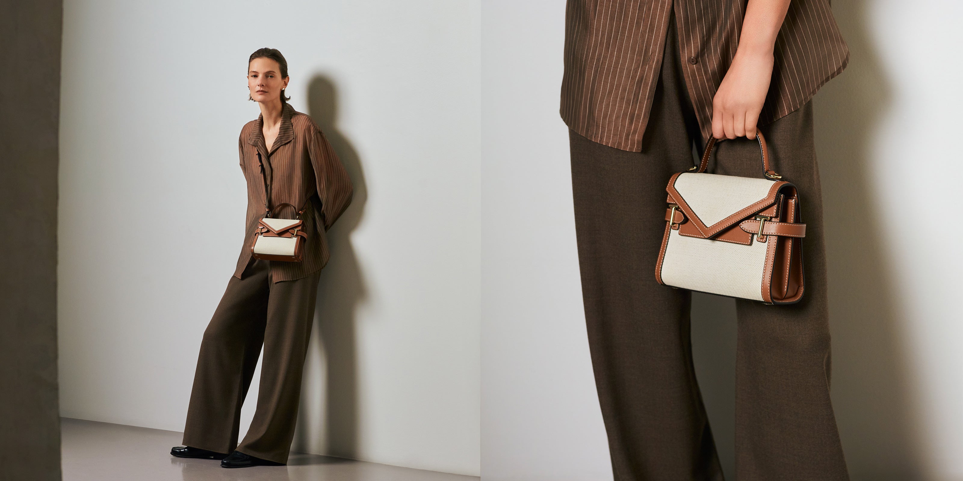 Exklusives SignaturLeder unserer Maison, geprägt mit mikroskopischen TBuchstaben, die ein markantes und zeitloses Muster schaffen.
